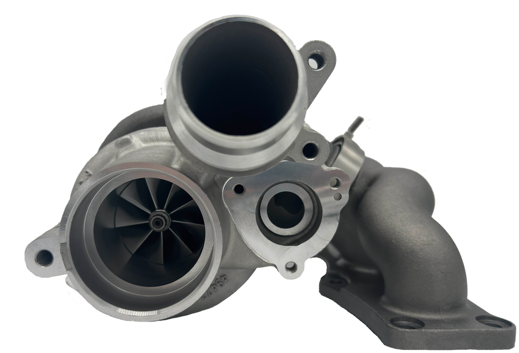 The long-awaited IM500 Turbo for the N20/N26! These are the same turbo specs as our B48 offering but in an N20 form factor. These do not use any OEM parts. The biggest problem with almost all of the aftermarket turbochargers on the market is that the exhaust housing is simply too small for more power and creates excess back pressure that kills the engine. Our IM turbos feature a proper resized exhaust housing to help with this problem and finally push the platform to 400whp-500whp+